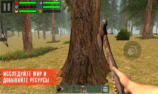 ✔ Смастерите оружие и инструменты. Рубите деревья в лесу, чтобы построить лагерь, или разожгите костёр, чтобы согреться.