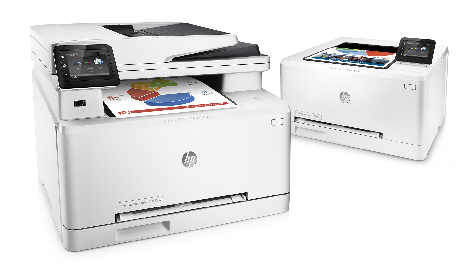 Первыми моделями на основе комплекса JetIntelligence стали компактные принтеры и МФУ (многофункциональные устройства) HP LaserJet Pro M252 и LaserJet M277, а также продукты корпоративного класса LaserJet M552 и LaserJet M553. Первые модели обеспечивают скорость печати до 18 страниц распространенного формата A4 в минуту (с использованием как черно-белой, так и цветной печати), тогда как время вывода первой страницы составляет всего 12 секунд. Также эти новые компактные лазерные принтеры имеют значительно ускоренную скорость двусторонней печати. Как заявляет HP, по данному показателю новинкам просто нет равных в классе.