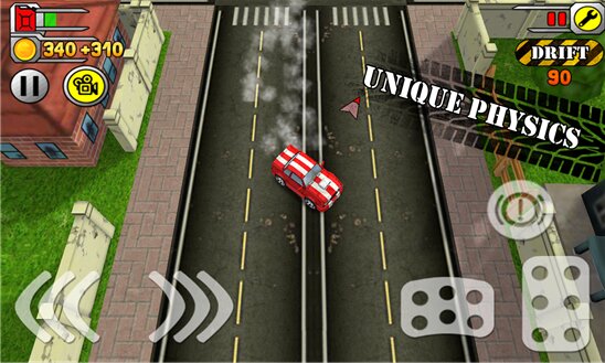 Если вы любите гоночные игры, магазин приложений Windows Phone может предложить вам несколько замечательных игр. Drift Mania Championship, Street Outlaws, игры серии Asphalt и другие. К этому списку можно отнести также игру Drift King — очень качественный симулятор дрифта с уникальной физикой и красивой 3D-графикой. Игра предлагает вам на выбор несколько автомобилей и ряд локаций. От небольшой карты жилого квартала, до тренировочной арены и огромного города. Вы можете выбрать один из присутствующих автомобилей (новые открываются за монеты) и отправляться на локацию жечь резину.