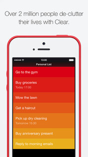 Симпатичный органайзер с очень простым и предельно понятным интерфейсом, полностью заточенный под жестовое управление. Отдельной похвалы достойно отличное цветовое решение: важность дела обозначается не только положением в общем списке, но и цветом. По умолчанию самые значительные — красные, но можно выбрать и другую цветовую схему в настройках. Все это создает яркий и внятный to-do лист. О самом важном можно поставить напоминания, а благодаря синхронизации с iCloud и наличию клиентов Clear для других операционок, ваши списки будут всегда под рукой. Отметим также интеграцию с Apple Watch и виджет для Центра Уведомлений.