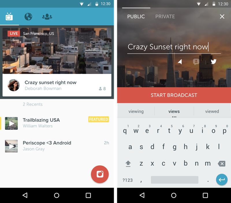 Periscope является прямым конкурентом Meerkat. Android-версия приложения очень похожа на клиент для iOS и является практически полностью идентичной, но первая может похвастаться некоторыми уникальными особенностями. С одной стороны, у Android-пользователей больше контроля над уведомлениями — вы можете настроить их так, как пожелаете, в том числе доступно полное отключение. В остальном Periscope для Android аналогичен Periscope для iOS. Пользовательский интерфейс нового сервиса выполнен по последним гайдлайнам языка дизайна Material, конечно.