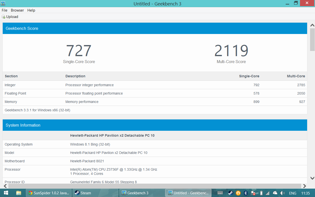 HP Pavilion X2 получил четырёхъядерный процессор Intel Atom Z3736F с пониженным энергопотреблением и тактовой частотой 1,3 ГГц, которая в режиме Turbo Boost может повышаться до 2,16 ГГц