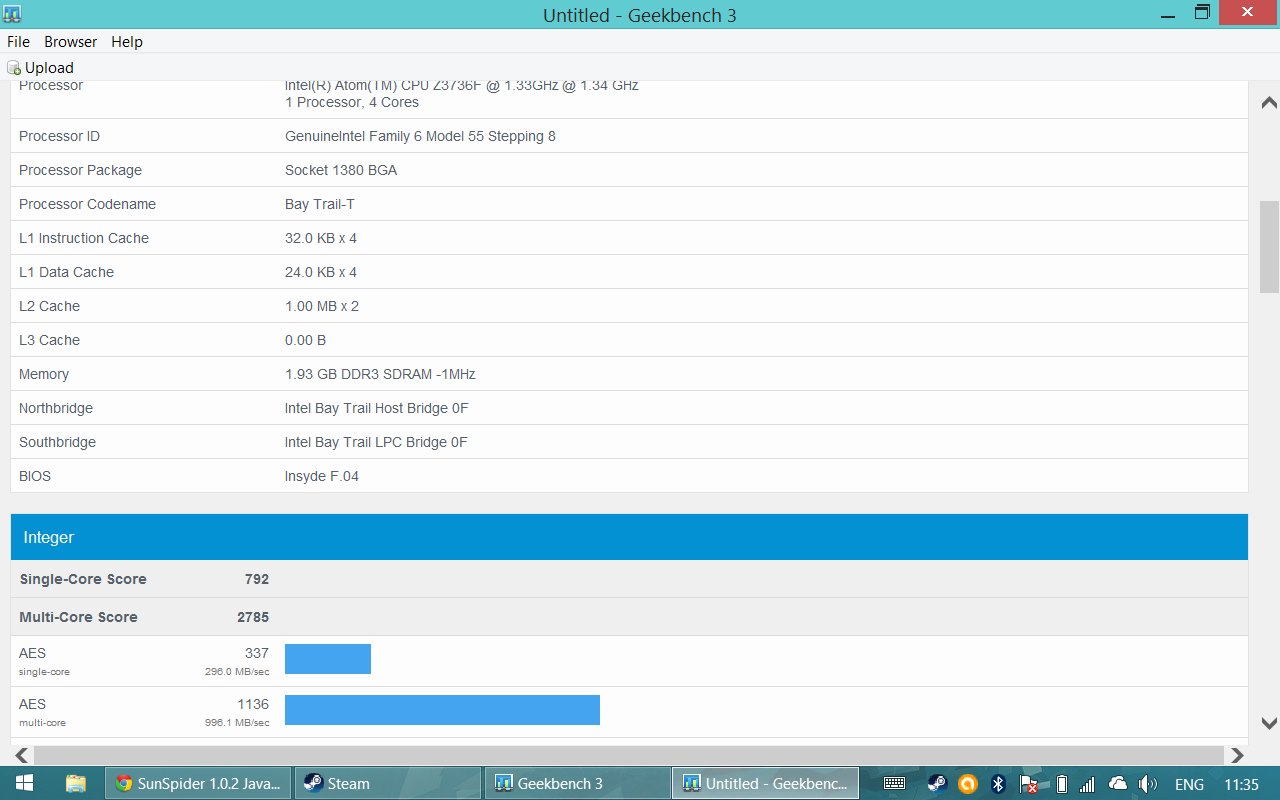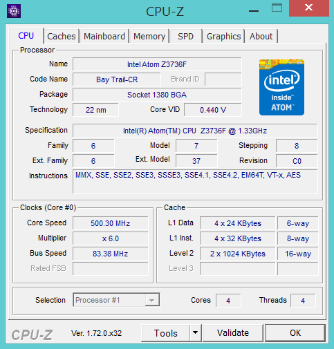- Процессор: четырёхъядерный Intel Atom Z3736F, 1,33 ГГц (до 2,16 ГГц в режиме Turbo Boost)