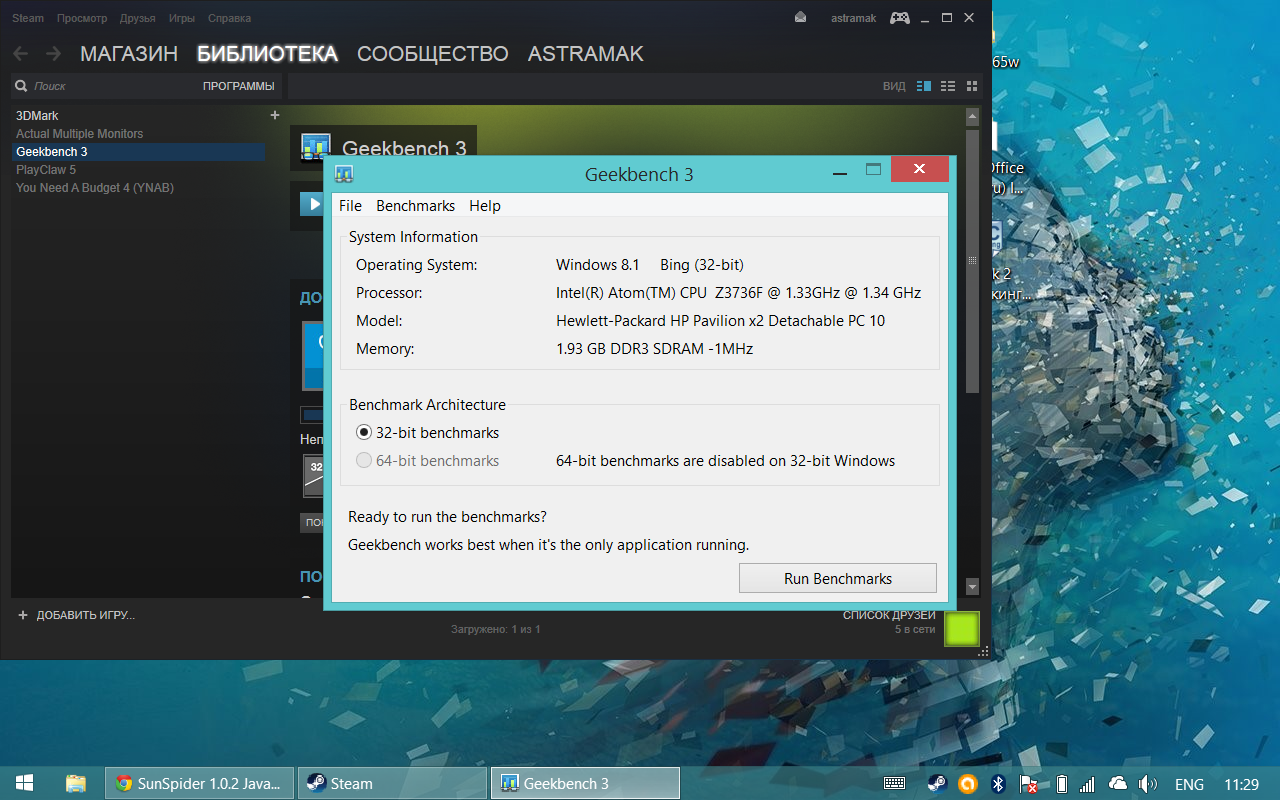 Планшет работает под управлением Windows 8.1. Скорость работы самой системы не вызывает нареканий. Именно в работе с таким устройством понимаешь цель всех фишек интерфейса Windows, которые грамотно подходят для работы с сенсорным экраном. Многие вещи удобнее и быстрее сделать пальцами, нежели курсором и клавиатурой.