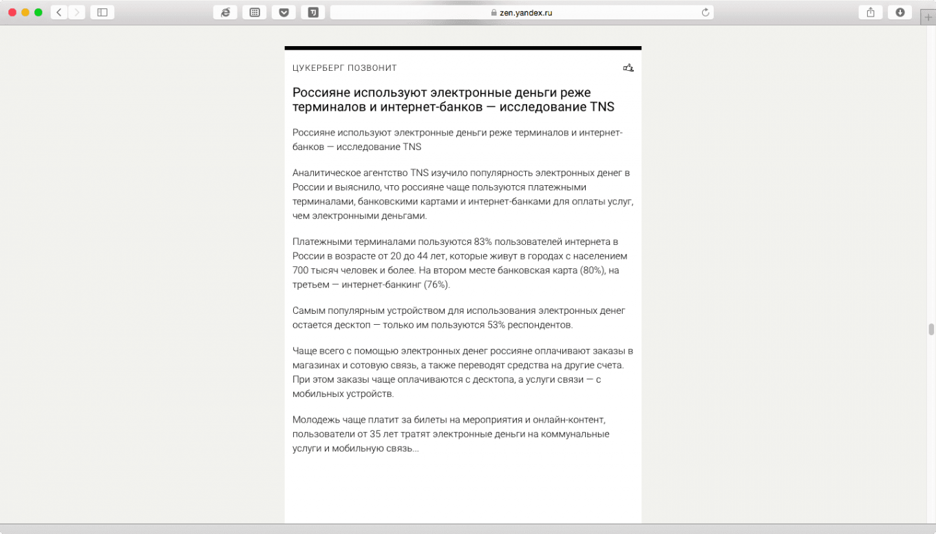 Новый сервис от российских разработчиков доступен по адресу zen.yandex.ru, но пользоваться им можно только на мобильном устройстве под управлением Android и iOS. Стоит отметить, что операционная система Windows Phone с ee Internet Explorer не поддерживаются вовсе. Сервис «Яндекс.Дзен» представляет собой набор алгоритмов, которые анализируют историю браузера и предлагают читателю наиболее интересные материалы от русскоязычных СМИ. Каждую публикацию и ее источник можно отметить кнопкой «Не нравится». Таким образом, пользователь может вносить изменения в алгоритмы подбора статей.