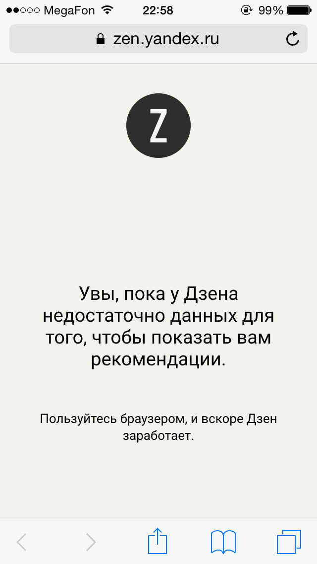 Как отмечают многие источники и сам «Яндекс», новый сервис «Дзен» работает крайне нестабильно. Например, у многих он вовсе не будет работать, а некоторым пользователям он выдаст сообщение о том, что в истории браузера недостаточно данных.