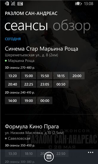 √ Расписание в кинотеатры;