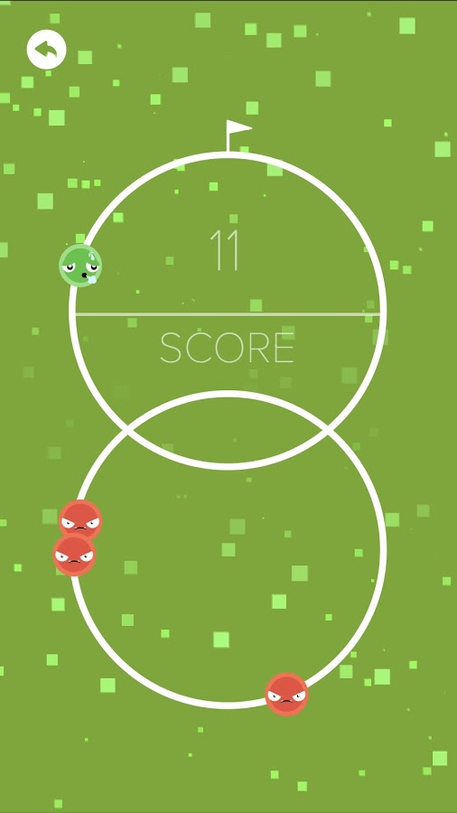 Два белых круга соединены вместе, словно составляющие цепи. На одном проживает маленький главный герой, а на другом – злые красные шары, которые постоянно становятся больше в размерах. Чтобы приступить к прохождению, необходимо нажать на экран. Милый мячик начнет движение по кругу, улыбаясь во все 32 зуба. Следует быть предельно аккуратным и внимательным, когда персонаж проходит место соединения двух кругов. Если он врежется во врага, игра закончится, и придется заново набирать очки. Когда игрок нажимает на дисплей еще раз, он ускоряет своего подопечного, давая шанс избежать столкновение или пробежаться чуточку быстрее, сделав парочку лишних витков для получения дополнительных очков.