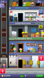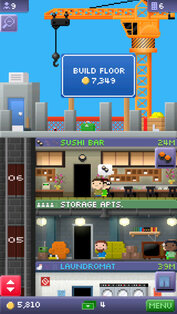 Tiny Tower — Если вы когда-нибудь играли в Game Dev и Hot Springs Story, вы примерно знаете, чего ожидать от Tiny Tower. Если вкратце, перед нами некое подобие симулятора управления небоскрёбом. Вместо огромного сооружения в нашем распоряжении оказывается лишь пара бесхозных этажей. Всё остальное на девяносто процентов зависит только от нас и всего лишь на десять — от удачи.