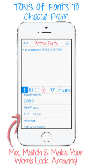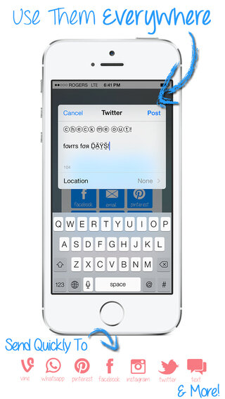 -> Более 115 шрифтов на выбор! Написать с Emoji текста, вверх ногами текста, пузырь букв, и многое, многое другое!