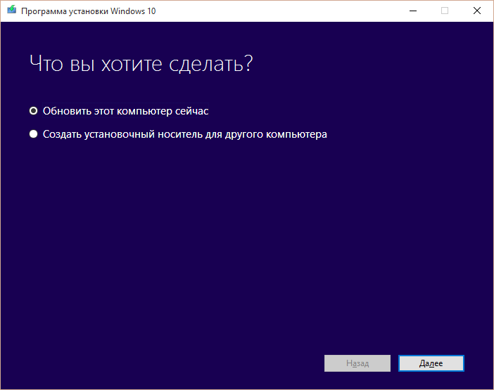 Установить Windows 10 посредством данной утилиты от Microsoft можно двумя способами. Первый обновляет текущую версию системы и оставляет в целости и сохранности все файлы и настройки пользователя, в то время как второй позволяет установить или переустановить Windows 10 с нуля. При этом, в последнем случае вы аналогично первому способу можете сохранить свои важные данные, однако Windows 10 всё равно будет инсталлирована начисто.