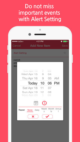 Данная программа является дорогим ежедневником, но зато очень и очень удобным. Например, вам нужно сегодня сделать несколько вещей. Вы набираете в ежедневнике список и устанавливаете для каждого свой голосовой сигнал. Самые важные из списка можно выделить яркими цветами. Если вам нужно выполнить какое-то дело в определённое время, то можно установить подачу сигнала по часам. Также есть функция установки напоминания на любой день недели, ежемесячно или в какую-либо неделю. Помимо этого, вы можете сгруппировать задачи в отдельный список: скажем, «погулять с собакой, сходить в магазин, забрать сына из детского сада» — группа «улица». Более того, вам будет очень полезно данное приложение, если у вас есть Apple Watch, т. к. имеется синхронизация с «умными» часами от Apple. Очень удобное приложение стоит 119 рублей.