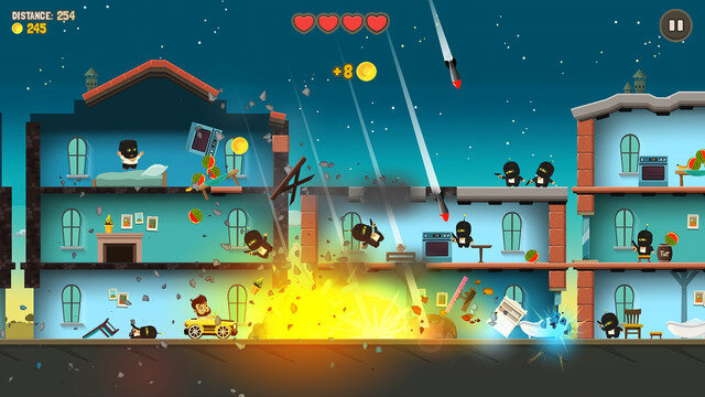 Здесь вам нужно бороться с инопланетными цивилизациями, используя всё современное обмундирование (автомобили, оружие). Также можно совершенствовать своего героя, за что придётся платить честно заработанные игровые коины. Начинается игра тоже довольно интересно — некие «воры» захватили часть орбиты нашей родной Земли, именно из-за этого и придётся воевать с инопланетной цивилизацией. Кровожадные боссы, различные игровые локации и прекрасное графическое оформление — вот что вас ждёт в данной аркаде.