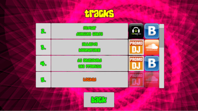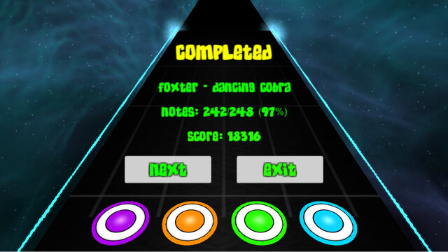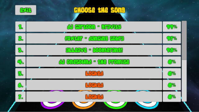 Как только вы пройдёте одну музыкальную композицию (соберёте не меньше 50% всех падающий нот), вам станет доступна следующая. Если вам понравилась одна из песен, есть возможность посмотреть её название. Также есть опция отключения звука при пропуске ноты, то сеть несколько секунд вы будете находиться в минорной тишине.