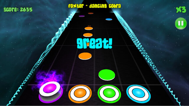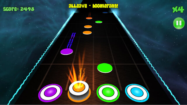 Здесь вам необходимо нажимать на соответствующую кнопку на экране, когда нота нужного цвета дойдёт до финиша. То есть вам предлагается тапать по экрану в ритме треков, звучащих в фоне.
