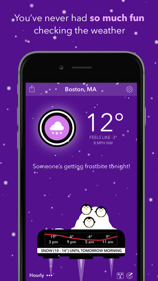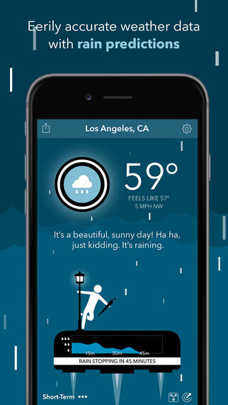 Это своего рода программа для просмотра точного прогноза погоды именно для вашего расположения. Carrot может не только сообщать вам среднюю информацию о погоде на весь день, как это делают большинство информеров, но и по более мелким временным промежуткам (например, на каждые три часа). С обновлением программа автоматически будет вас информировать о погоде на целый день, причём ежедневно и без каких-либо сбоев. Конечно, программа ориентирована прежде всего на англоговорящие страны, но и для других данное решение будет весьма полезным. Если у вас есть часы Apple Watch, то программа будет вести синхронизацию и с ними, чтобы информация о погоде была у вас прямо на руке.
