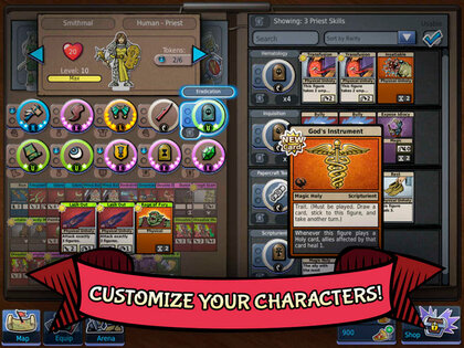 Представляю вашему вниманию карточную RPG игру, основы которой взяты у компьютерной Card Hunter. Игра получили дизайн, очень похожий на настольную игрушку. Это не удивительно, ведь в её создании принимал участие Ричард Гарфилд, нарисовавший настольную игру «Magic: The Gathering». Отмечу, что все действия Loot & Legends завязаны на использовании карточек, то есть даже для совершение перехода от одного гекса к другому нужно применить возможности вашей карточки. Это обычная RPG, где сражаются по две команды, одна из которых — ваша. Как и положено в таких играх, вы можете всячески модернизировать своих персонажей.