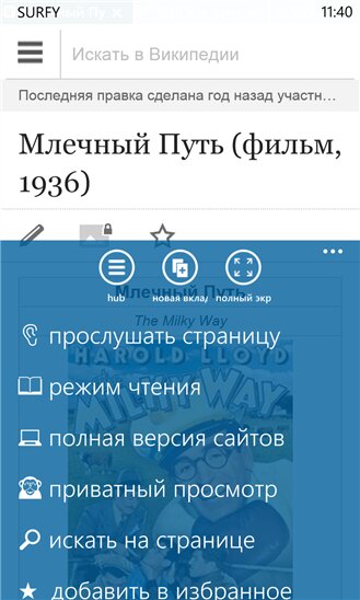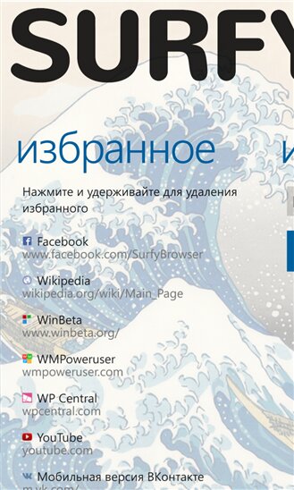 Браузер Surfy обладает каким-то диким количеством различных функций: голосовое чтение страниц, приватный просмотр страниц, ночной режим, полноэкранный режим, скоростной режим, управление вкладок, быстрое переключение между отображением страниц, панель избранного, загрузка и передача файлов, настройки внешнего вида, и многое другое. Плюс стильный дизайн и российская локализация. Из минусов браузера можно назвать довольно долгий первый запуск приложения.