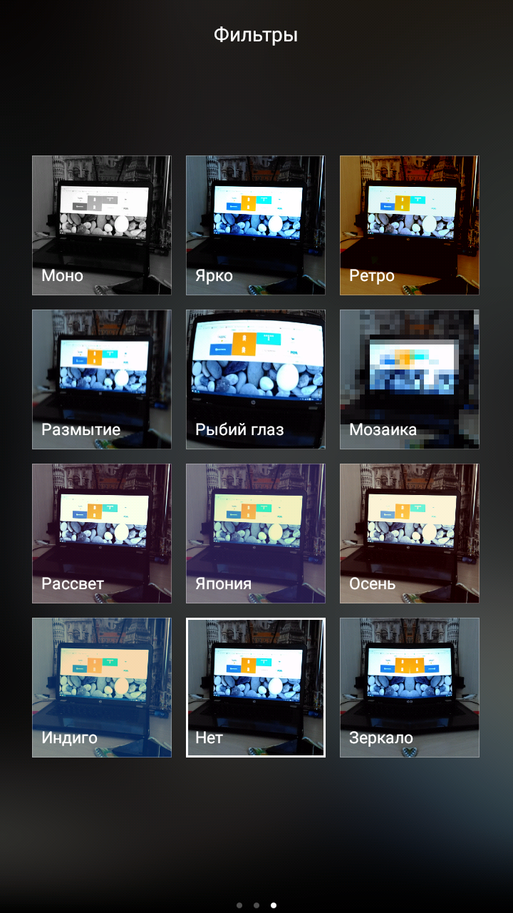 В приложении камеры вы найдете несколько эффектов, применяемых в реальном времени (доступны по свайпу влево) и весьма бесполезные режимы фото (активируются свайпом вправо).
