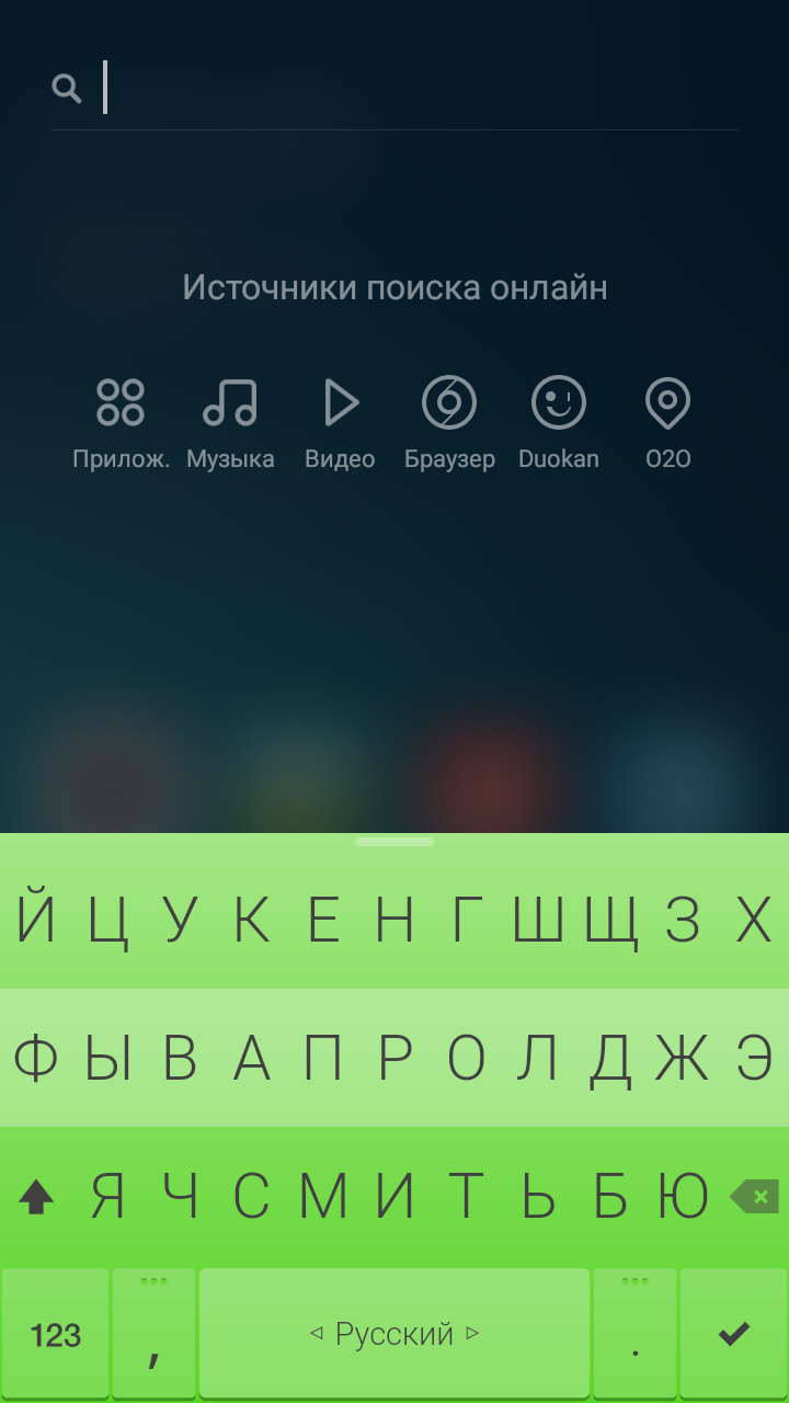 Диковинным для меня стало наличие аналога Spotlight от Apple, вызываемого таким же способом — свайп снизу. Для тех, кто не знает — это поиск по всей системе (приложения, файлы, контакты и т.д.).
