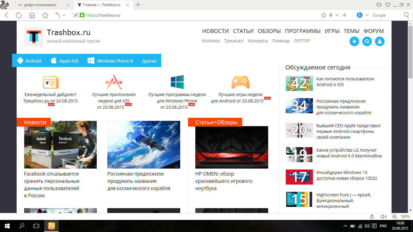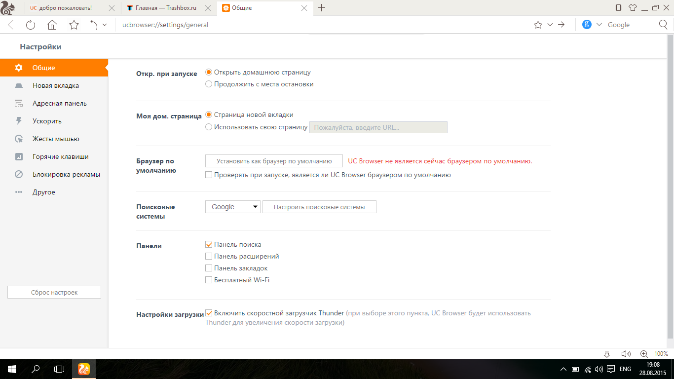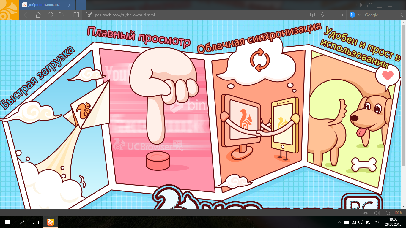 Новая версия браузера от компании UCWeb для ПК получила полноценную поддержку новой версии операционной системы Windows 10, полный обзор которой доступен на нашем сайте, и полностью поддерживает работу на сенсорных экранах. Элементы управления приложения стали выглядеть аналогично таковым в Microsoft Edge — новом штатном браузере для Windows 10, который пока не может конкурировать с UC. Элементы управления большие, тонкие и минималистичные, как и подобает последним веяниям в дизайне. За счет этого они легко воспринимаются визуально, а благодаря совместимости c Windows 10 управляются пальцами.