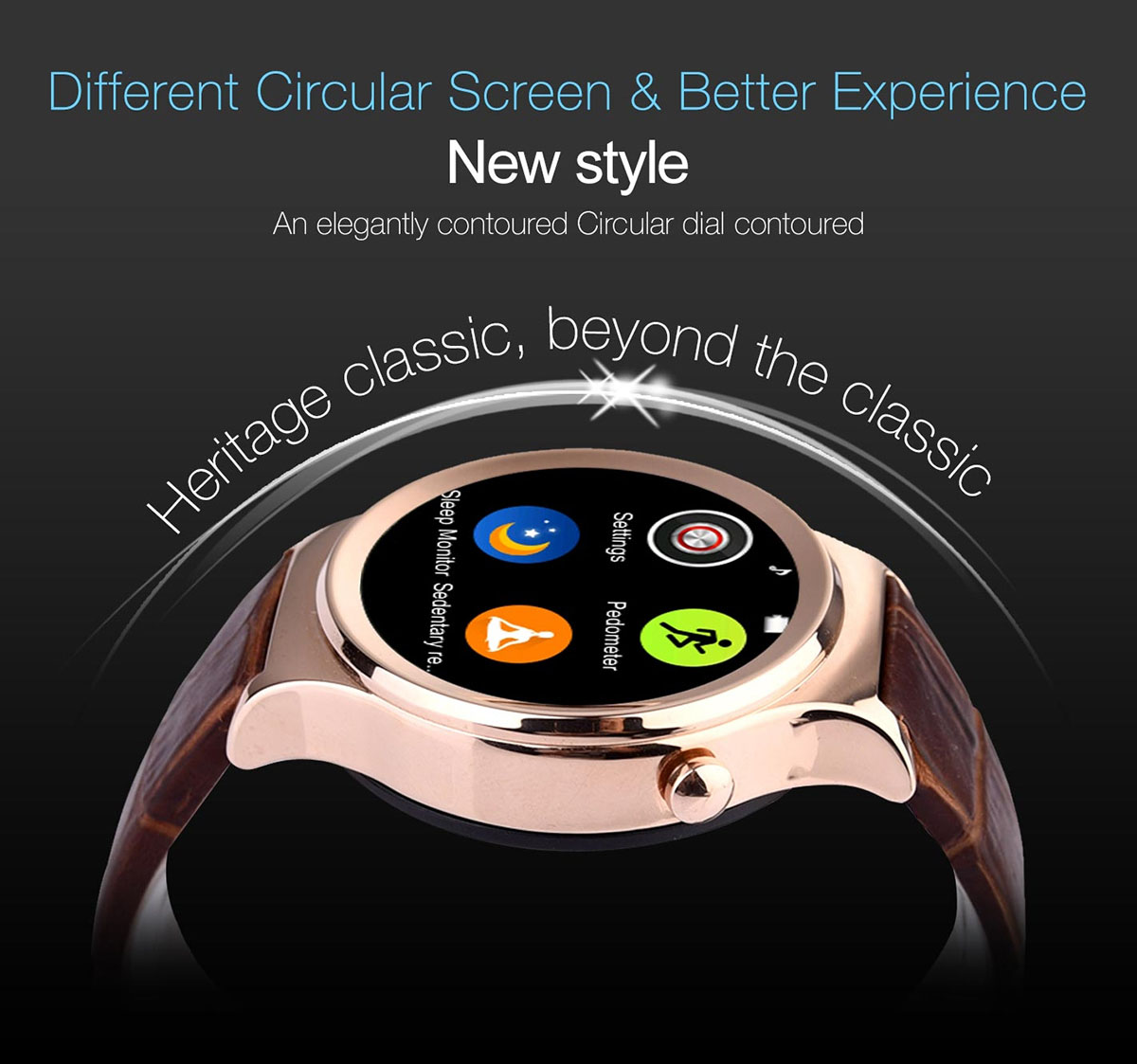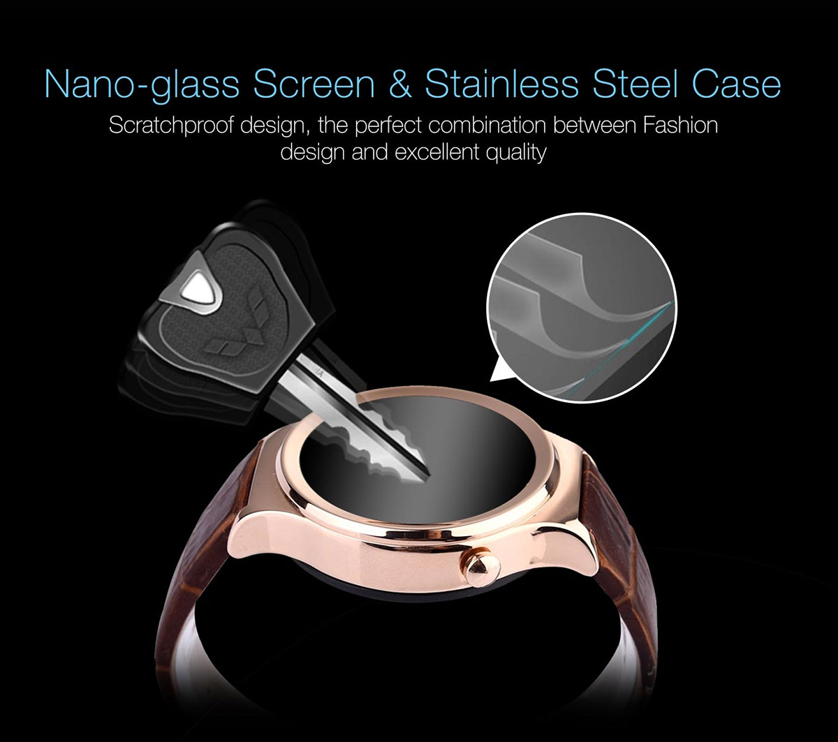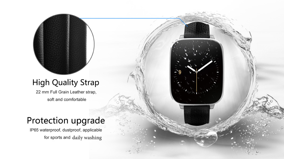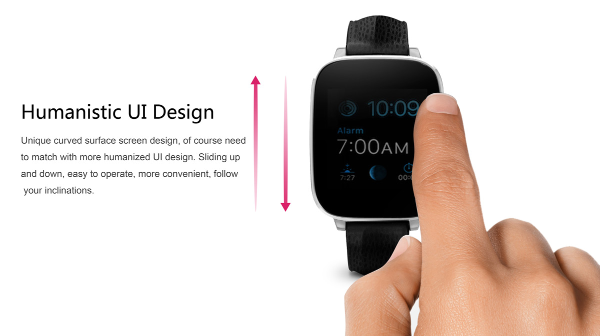 Следующие смарт-часы не менее интересные чем ZGPAX S79. В первую очередь гаджет получил красивый корпус с закруглёнными краями, изогнутый дисплей и интересный кожаный ремешок в двух возможных вариациях: тёмной и светлой.