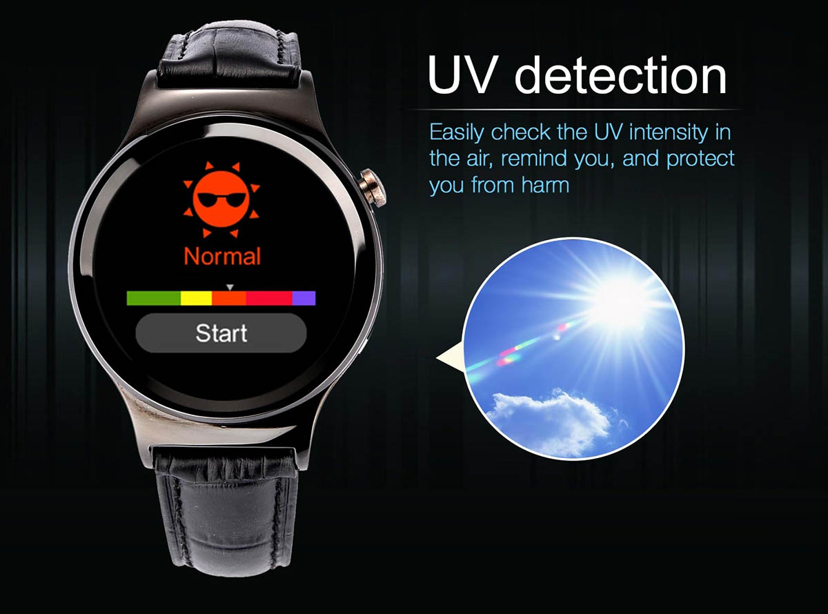Умеет этот гаджет многое: звонить независимо от смартфона, измерять количество пройденных шагов и потраченных калорий, проигрывать музыку, мониторить сон — в общем, всё, что умеют и другие умные часы. Единственная особенность — наличие сканера ультрафиолетовых лучей.