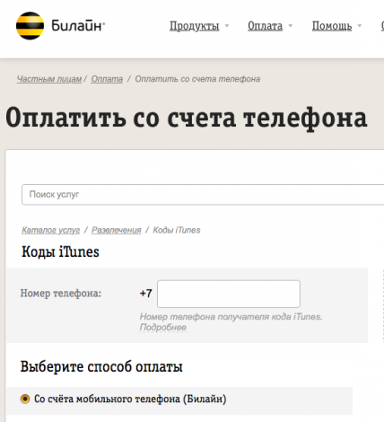 Абоненты «Билайна» теперь могут платить в iTunes с мобильного счета