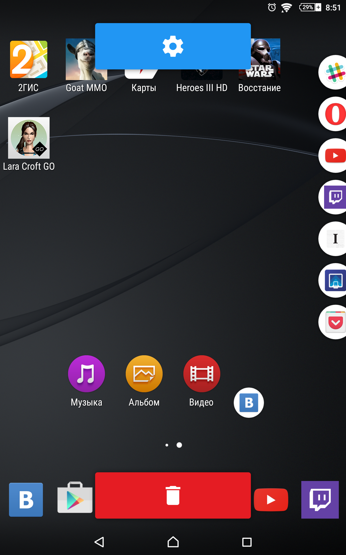 Долгое нажатие на иконки позволяет быстро перейти в настройки Pintasking или удалить иконку из бара.