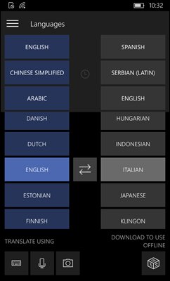 - Слово дня — прикрепите плитку переводчика на домашний экран и она будет отображать слово или фразу на различных языках.