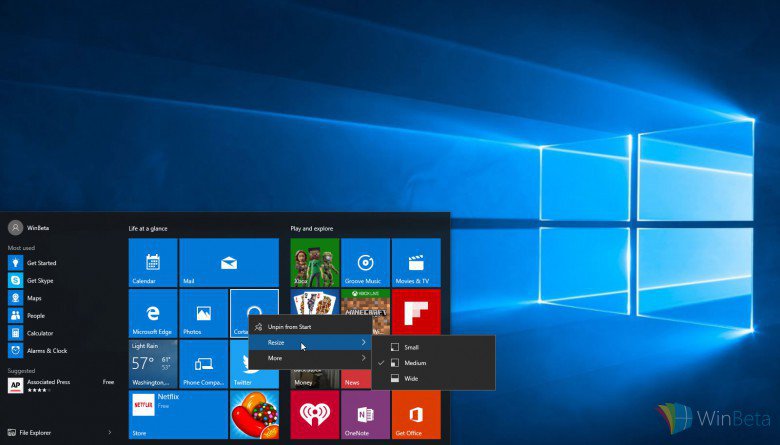В сеть попала новая сборка Windows 10 с улучшенным меню «Пуск»
