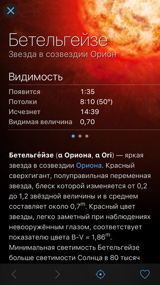 Это звезда или Сатурн? Вместе со Sky Guide изучать ночное небо станет проще простого. Поднимите вверх ваш iPhone или iPad, и Sky Guide автоматически подстроится под звезды у вас над головой — дополнительная настройка не требуется!
