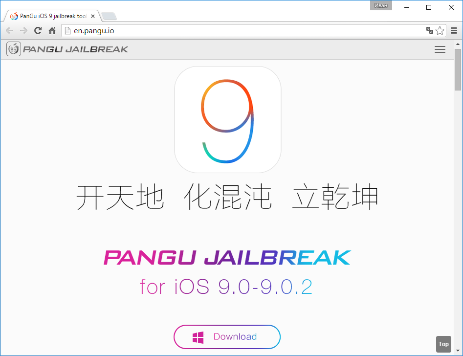 Программа доступна только для операционной системы Windows — версии для компьютеров семейства Mac пока нет. Скачать утилиту (вес составляет всего 80 Мб) можно с официального сайта Pangu — это, к слову, первое действие в инструкции по джейлбрейку iOS 9. Как сообщили представители китайской команды, программа Pangu Jailbreak последней версии 1.0.1 легко взламывает последние версии мобильной платформы от Apple — это касается как iOS 9, так и 9.0.1, а также последней доступной на данный момент версии 9.0.2. Совместима утилита с большинством смартфонов и планшетных компьютеров из Купертино.