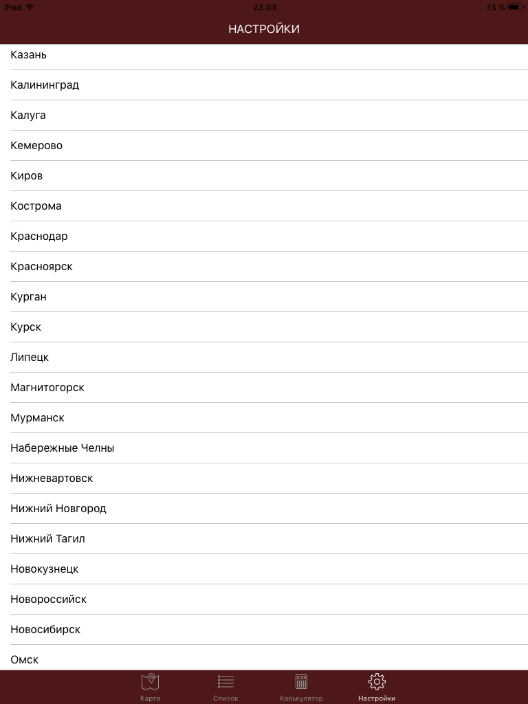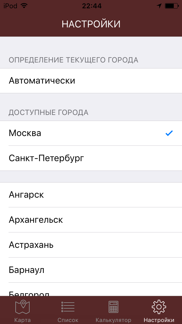 Первый экран, который встречает пользователя сразу после открытия приложения — карта навигации. При входе SeekRate поинтересуется, в каком городе вы планируете обменивать валюту. Сервис предлагает более сотни городов России, и список постоянно расширяется. Если вы не выберите город — откроется стандартная карта Москвы, потому что она установлена в приложении по умолчанию вместе с Санкт-Петербургом. К слову, в настройках вы можете выбрать другие города и регионы. Здесь же, на первом экране, есть отдельная кнопка для автоматического перехода к настоящему местоположению. К сожалению, в моем городе нет выгодных курсов валют и таких же обменников, поэтому для обзора я «перебрался» в Москву.