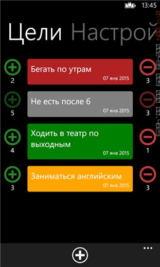 Достигни цели Приложения / Windows Phone 8 / Календари и списки дел / Хобби Данное приложение было создано для помощи в достижении Ваших целей. Цветовой индикатор подскажет, насколько Вы успешны. Интерфейс приложения предельно прост и интуитивно понятен. Поставьте цель прямо сейчас!Обновлено: 1 ноября 2015, 22:34. miracle33213 Пользователь Комментариев пока нет Оставьте комментарий...