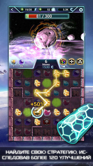Вас ждут таинственные далекие галактики, где вы сможете исследовать БОЛЕЕ 180 АСТЕРОИДОВ. Собирайте как можно больше рядов по вертикали, горизонтали и диагонали, используйте дронов, выполняйте испытания в особом режиме комет и устанавливайте рекорды!
