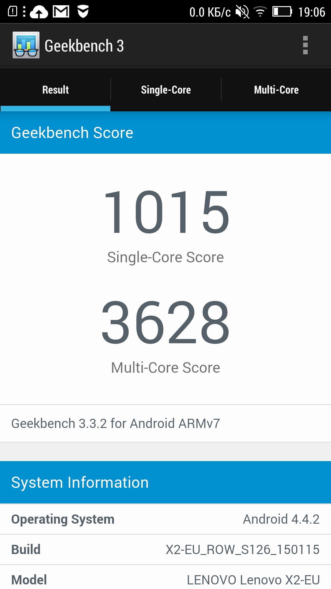 Смартфон работает под управлением Android 4.4.2 с фирменной оболочкой Lenovo Vibe UI 2.0.