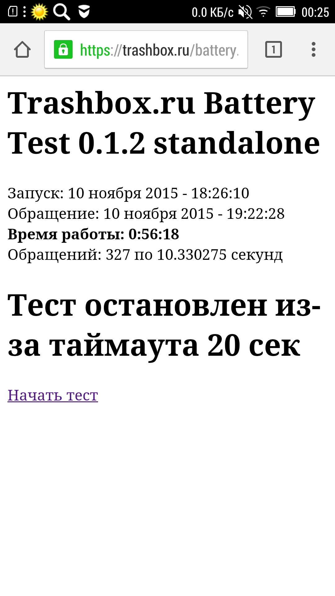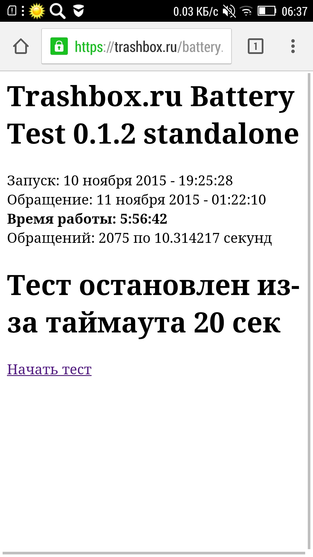 В нашем тесте с выключенными режимами энергосбережения смартфон продержался почти 7 часов. Во время теста был включен Wi-Fi, яркость экрана выставлена на 50%, тест работает в Google Chrome.