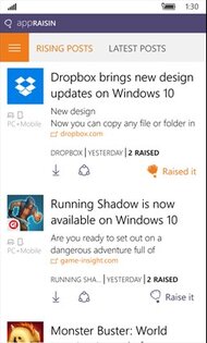 Теперь AppRaisin — то универсальное приложение для Windows 10 и Windows 10 Mobile и с его помощью пользователи могут продвигать различные приложения и исследовать магазин. В приложении будут собираться новости о различных приложениях и пользователи будут продвигать их, поднимая рейтинг своеобразными «лайками».