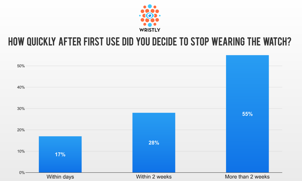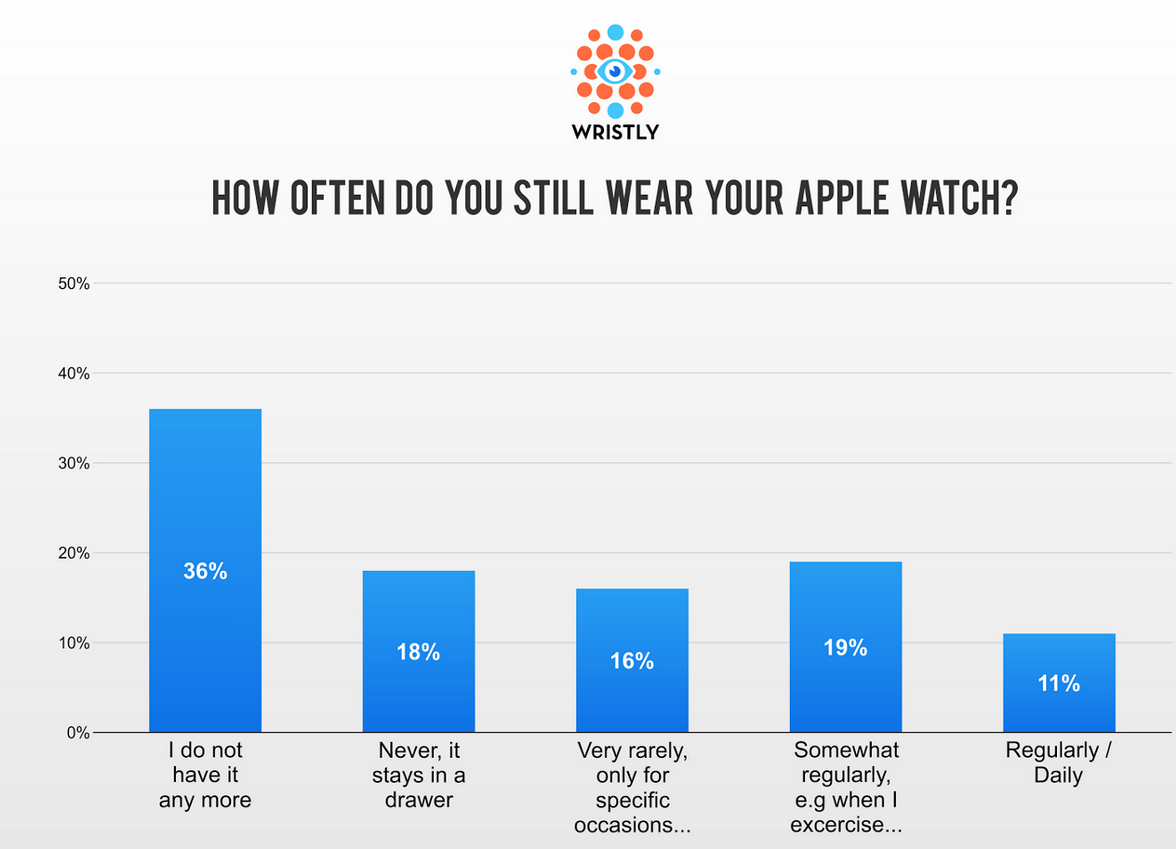 Аналитическая компания Wristly, проводящая статистические исследования в области носимой электроники, представила интересные данные, касающиеся умных часов Apple Watch. Был проведён опрос среди недовольных владельцев этого аппарата, которые от него отказались по определённой причине, или же используют его редко. Самое интересное то, что порядка 40 % разочарованных владельцев Apple Watch допускают факт покупки ими устройства второго поколения. Многие ссылаются на тот факт, что следующие часы компании получат поддержку SIM-карты и их можно будет использовать без привязки к смартфону, чтоб совершать вызовы.