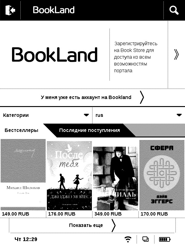 Reader Book 2 получил 6-дюймовый сенсорный экран, выполненный по технологии E-Ink с разрешением 800x600 без подсветки. Нужно признать что до последнего момента я не замечал этой разницы в разрешениях между устройствами и думал что они полностью идентичны.