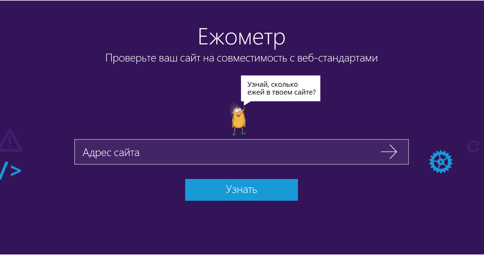Крупнейший в Европе ресурс для IT-специалистов Habrahabr совместно с российским подразделением Microsoft запустили необычный инструмент для оценки удобства и производительности сайтов — Ежометр. Данный сервис позволяет оценить сайт по таким критериям, как дизайн, качество кода, возможности, предоставляемые сайтом и то, насколько технологии, используемые сайтом, современны. Необычное название было выбрано из-за созвучия с названием нового браузера Edge от Microsoft.