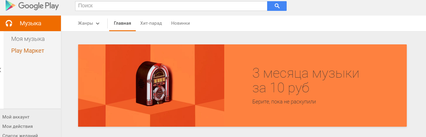 Google дарит 3 месяца подписки на Play Music всего за 10 рублей