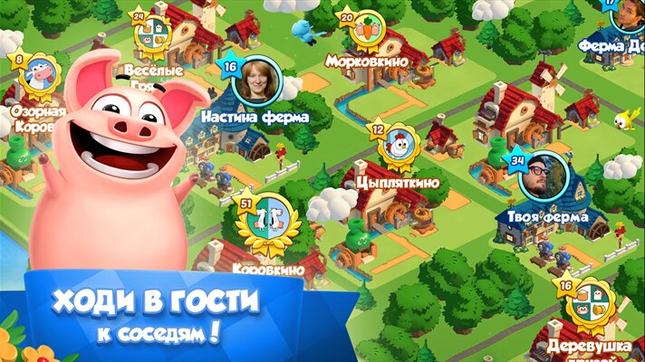 Приготовьтесь к новому сезону сбора урожая в веселой Деревушке друзей – веселом симуляторе фермы, где животные танцуют, а ваши друзья со всего мира помогают вам управиться с работой на суперсоциальной Ферме Сообщества! Пакуйте чемоданы – хватит прозябать в каменных джунглях, вас ждут пасторальные пейзажи, сельская романтика и самые смешные в мире козы, свинки, цыпы и коровки! СОЗДАЙТЕ СВОЙ РАЙ СВОИМИ РУКАМИ!