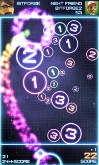 Orbital — это в первую очередь, очень красивая графика. Футуристический стиль сочетающий в себе одновременно неоновый свет, голограммы, всполохи, многочисленные генераторы частиц и лазерные лучи обязательно порадуют глаза игроков. Но яркий дизайн лишь часть этой замечательной игры. Она разбита на 3 режима различные по сложности и условиям — Supernova, Gravity и Pure. В каждом из них, вам необходимо стрелять из пушки шарами имеющими цифровое обозначение. При столкновении с другими, прочность (или жизнь) уменьшается на единицу. После остановки он продолжает расти пока его сторона не упирается в стенку поля или в другой объект. Так например, если в самом начале, первый же снаряд окажется точно посередине экрана, то он займет почти всю площадь. А это значит, что можно начинать сначала. Но главное, чтобы шар не отлетел назад и не пересёк линию над пушкой. Совместная игра на двух человек позволит устроить захватывающие соревнования.