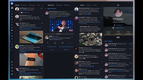 Продвинутые пользователи социальной сети Twitter знают, что на Windows 10 и Windows 10 Mobile весьма унылые клиенты официальные клиент, но есть парочка замечательных сторонних альтернатив. Вот Aeris, к примеру, активно разрабатывается и получает регулярные обновления.