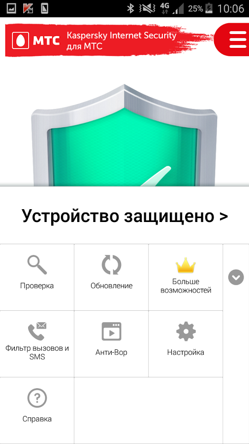 С подпиской и без нее антивирусные базы приложения Kaspersky Internet Security для МТС будут обновляться одинаково, но в последнем случае это нужно делать вручную. Скачать антивирус Kaspersky Internet Security для МТС для Android можно на Трешбоксе.