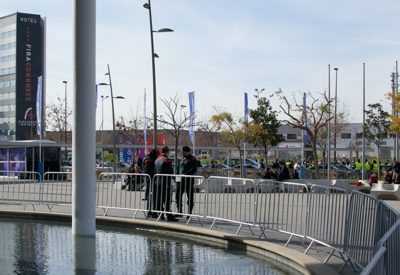 На улицах Барселоны в эти дни было довольно много полицейских. На выставке же их было ещё больше. Так, круглосуточно вокруг Фира Барселона дежурили отряды полиции, внутри до входов охрану обеспечивали полицейские, а после — нанятые охранники.