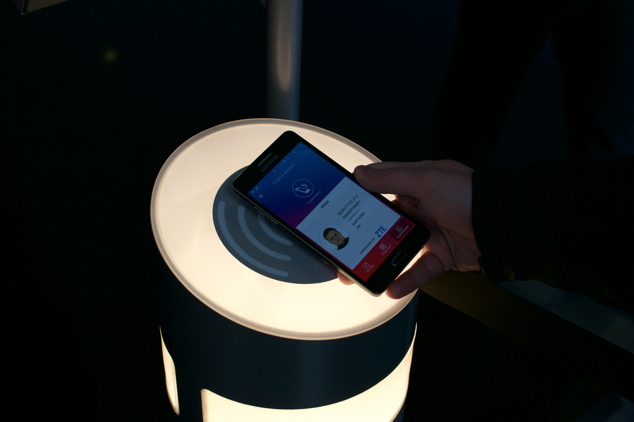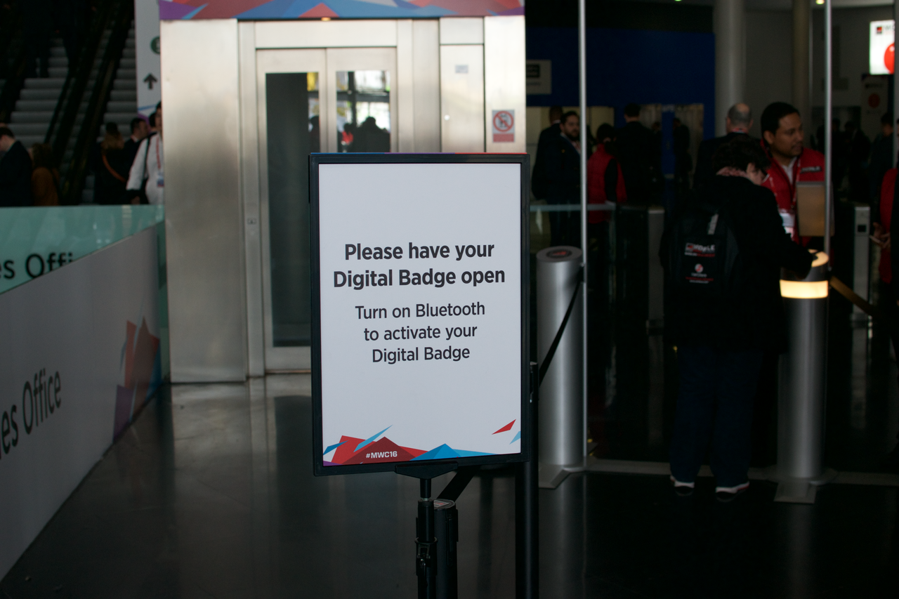 Для использования Digital Badge необходимо запустить MWC app, включить Bluetooth и подойди к специальной стойке. Приложение раздает информацию всем устройствам, способным её считать, на экране у охранника появляется ваше фото и если вы похожи сами на себя, вас пропускают.