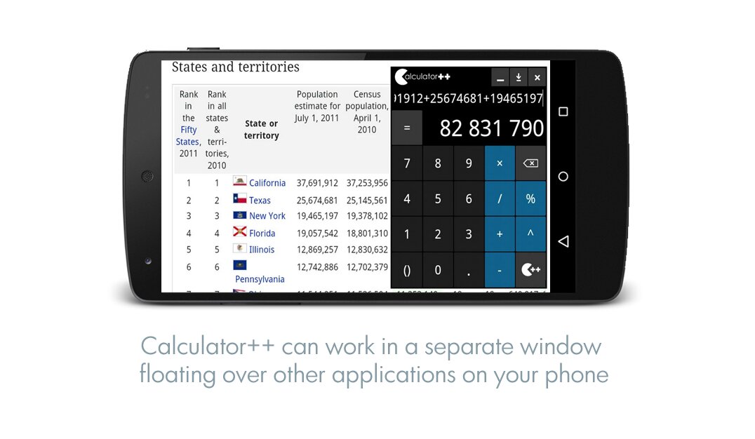 Calculator++ — это современный, продвинутый и лёгкий в использовании научный калькулятор.